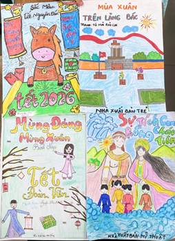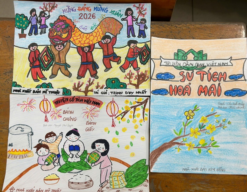 2. Cuộc thi "Vẽ thiết kế bìa sách": Sáng tạo cùng tri thức Nhân kỷ niệm 96 năm Ngày thành lập Đảng Cộng sản Việt Nam, học sinh từ khối 1 đến khối 5 đã tham gia thiết kế bìa sách với chủ đề "Mừng Đảng – Mừng Xuân".