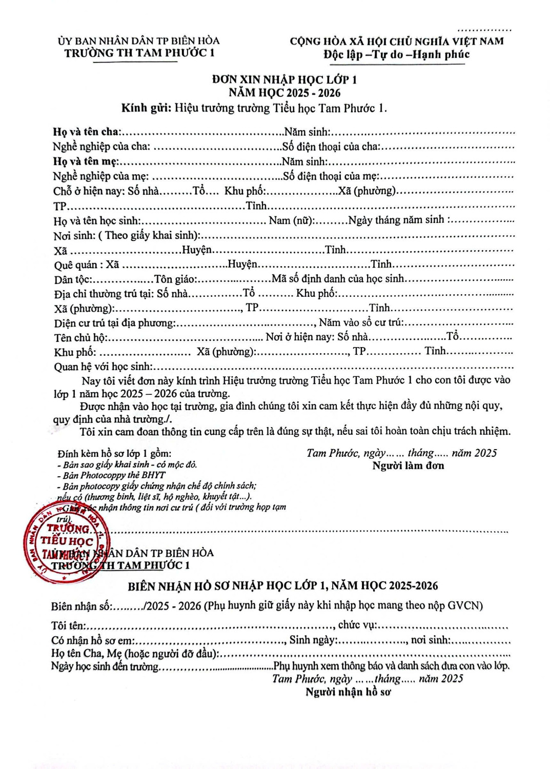 Căn cứ theo chỉ đạo của Phòng Giáo dục và Đào tạo TP. Biên Hòa, Trường Tiểu học Tam Phước 1 triển khai kế hoạch chiêu sinh lớp 1 như sau: