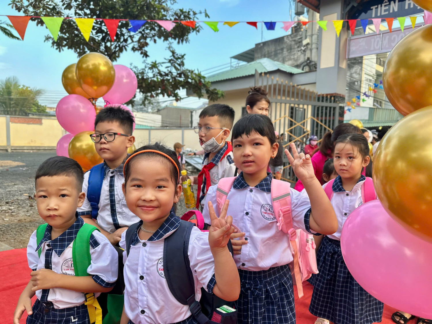 Các bậc phụ huynh đồng hành cùng con bước vào năm học mới.